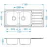 • LINE MAXIM 100 SAT 1160x 500 1K POP-UP zlew wpuszczany  z syfonem pop up ALVEUS 1087975